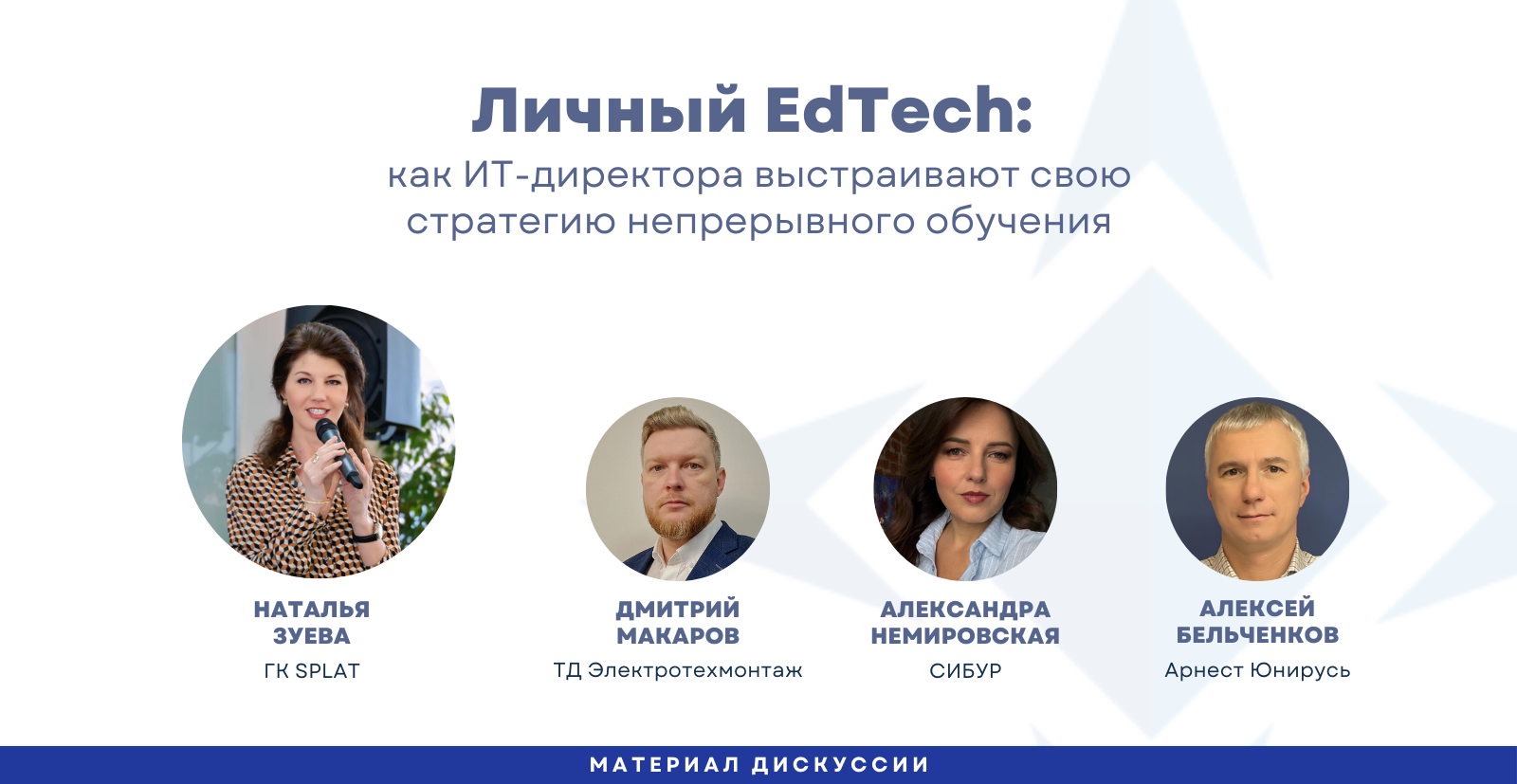 На одном из живых разговоров Клуба ИТ-лидеров «Личный EdTech: как ИТ-директора выстраивают свою стратегию непрерывного обучения» руководители из крупных компаний честно поговорили о том, как на самом деле выстраивают своё обучение: что работает, что бросают на середине и за счёт чего им удаётся не выпадать из повестки бизнеса.