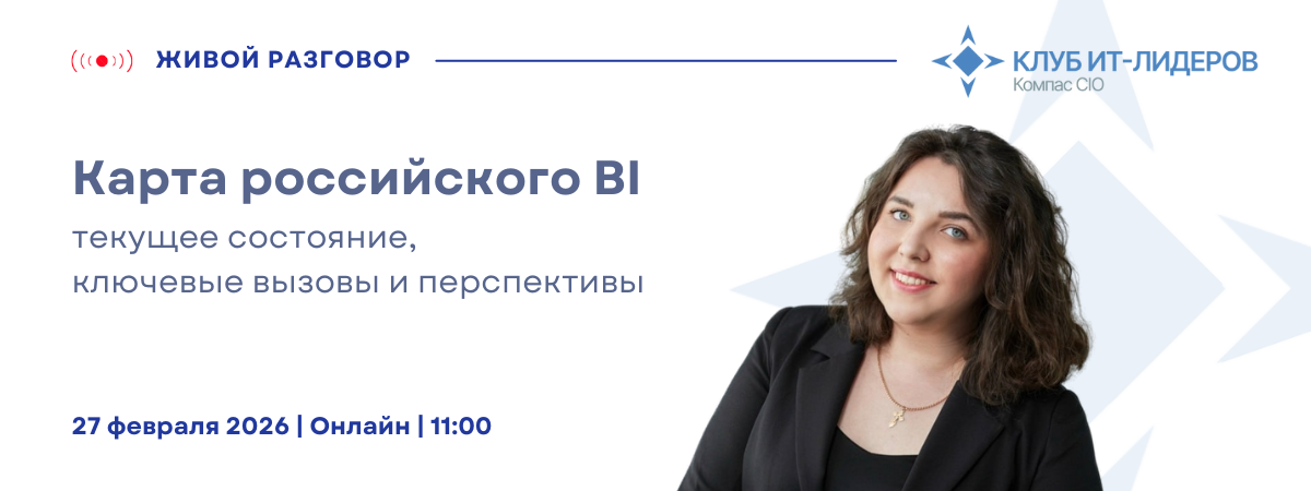 Клуб ИТ-лидеров Компас CIO приглашает вас принять участие в живом разговоре "Карта российского BI 2026: текущее состояние, ключевые вызовы и перспективы", который пройдет в пятницу, 27 февраля 2026, в прямом эфире с 11:00 до 12:30 МСК.
