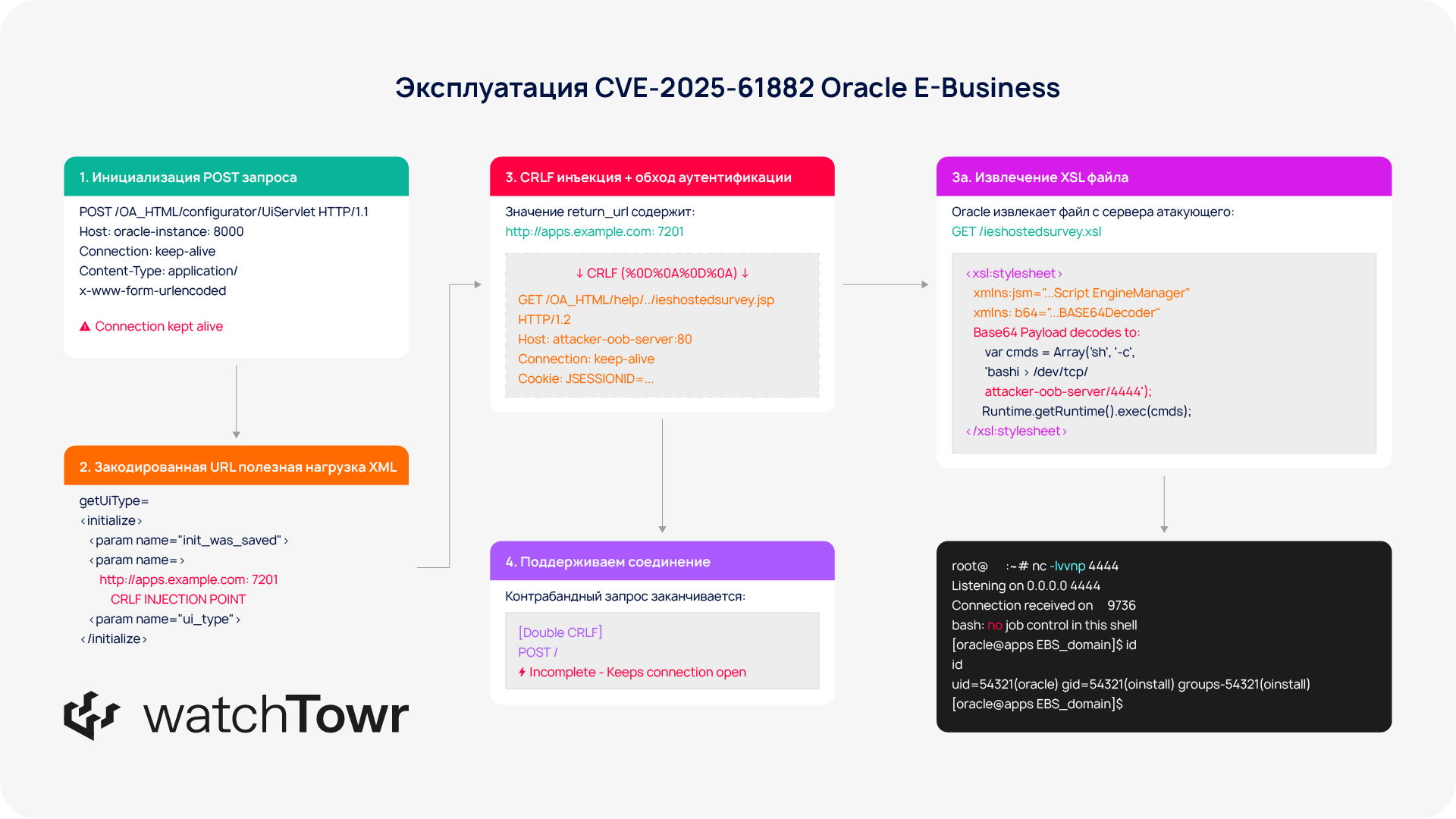 Уязвимость в платформе Oracle E-Business Suite (OEBS) представляет собой цепочку из нескольких взаимосвязанных недостатков. Её конечный результат – удалённое выполнение кода на целевой системе. Критичность повышается тем, что для успешной эксплуатации не требуется аутентификация на сервере.