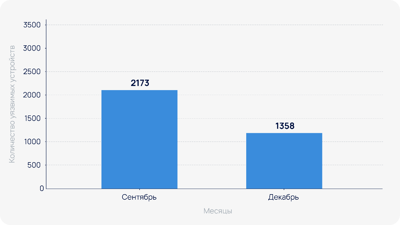Согласно информации ShadowServer, количество уязвимых устройств снижалось крайне медленно, всего на 815 инсталляций за два месяца, что указывает на сложности получения обновлений, в том числе из-за прекращения поставок Cisco в России с марта 2022 года.