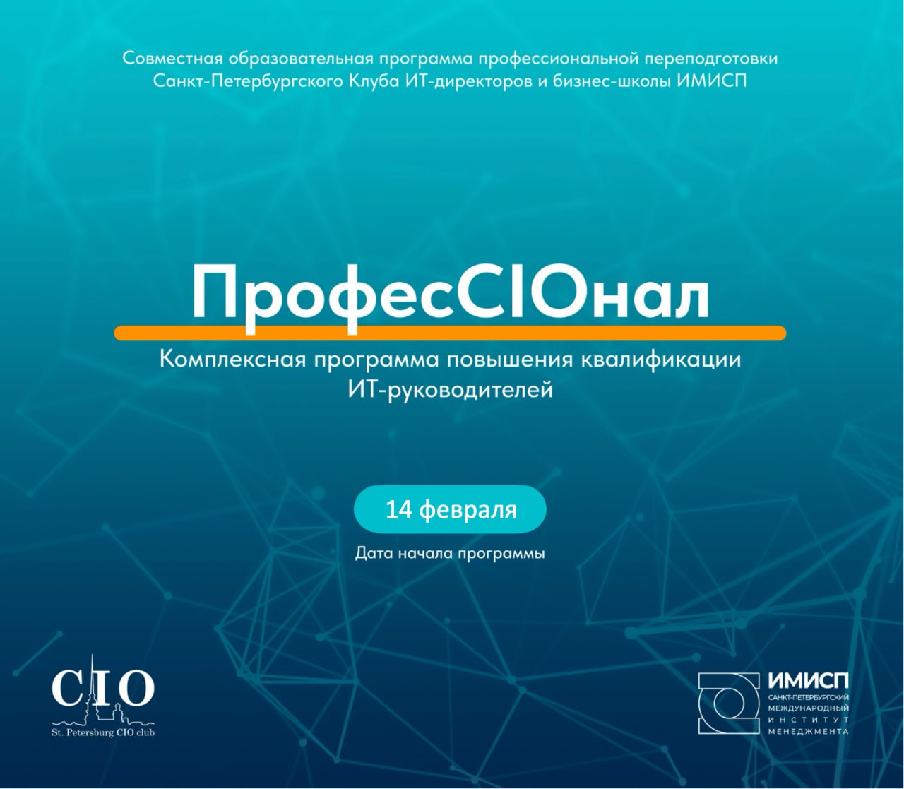 «ПрофесCIOнал» — это совместная программа профессиональной переподготовки Санкт-Петербургского Клуба ИТ-директоров и бизнес-школы ИМИСП. Программа разработана для действующих ИТ-директоров, руководителей ИТ-направлений и их команд, с акцентом на систематизацию управленческих знаний, обмен практическим опытом и развитие профессионального сообщества.