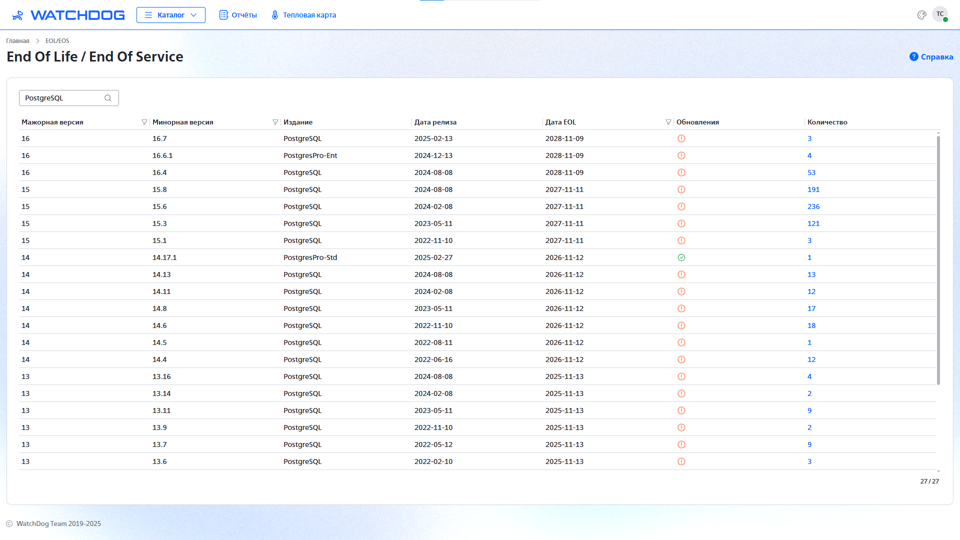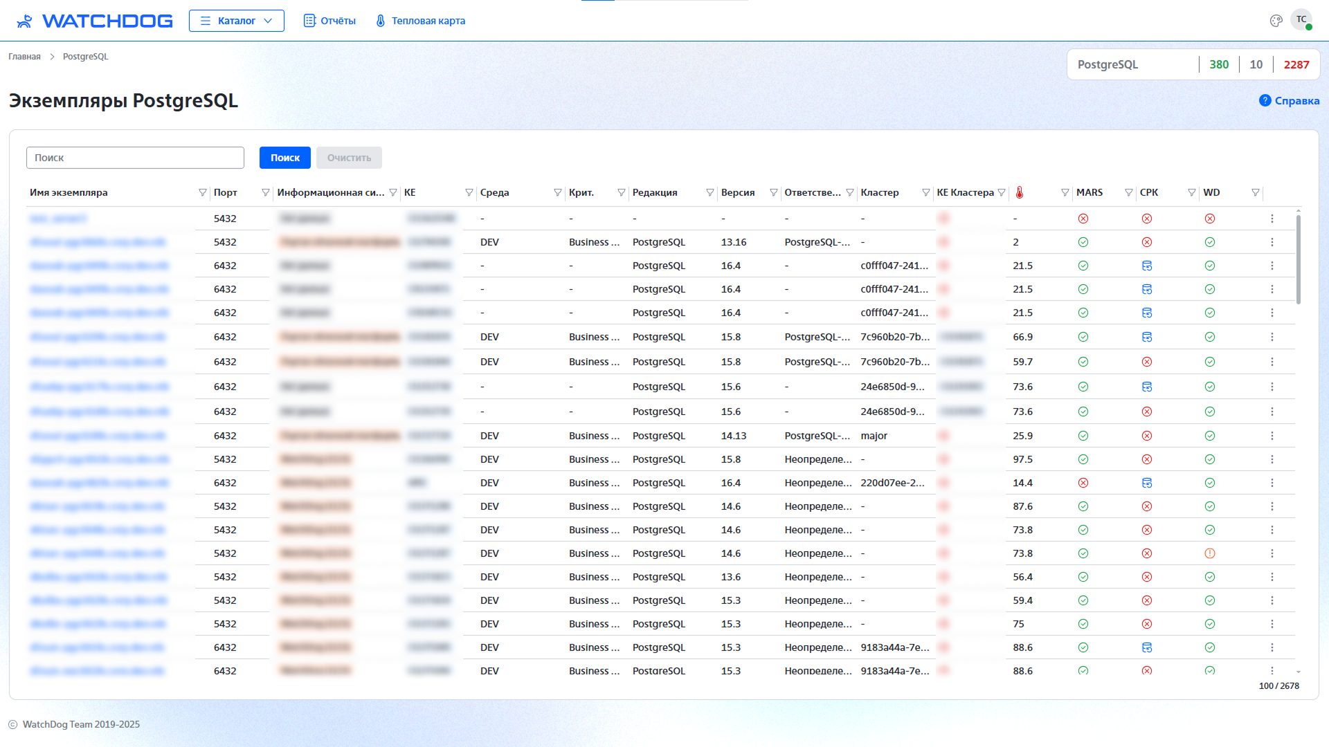 WatchDog начинал с охвата только по MS SQL и PostgreSQL, в 100 суммарных проверок.