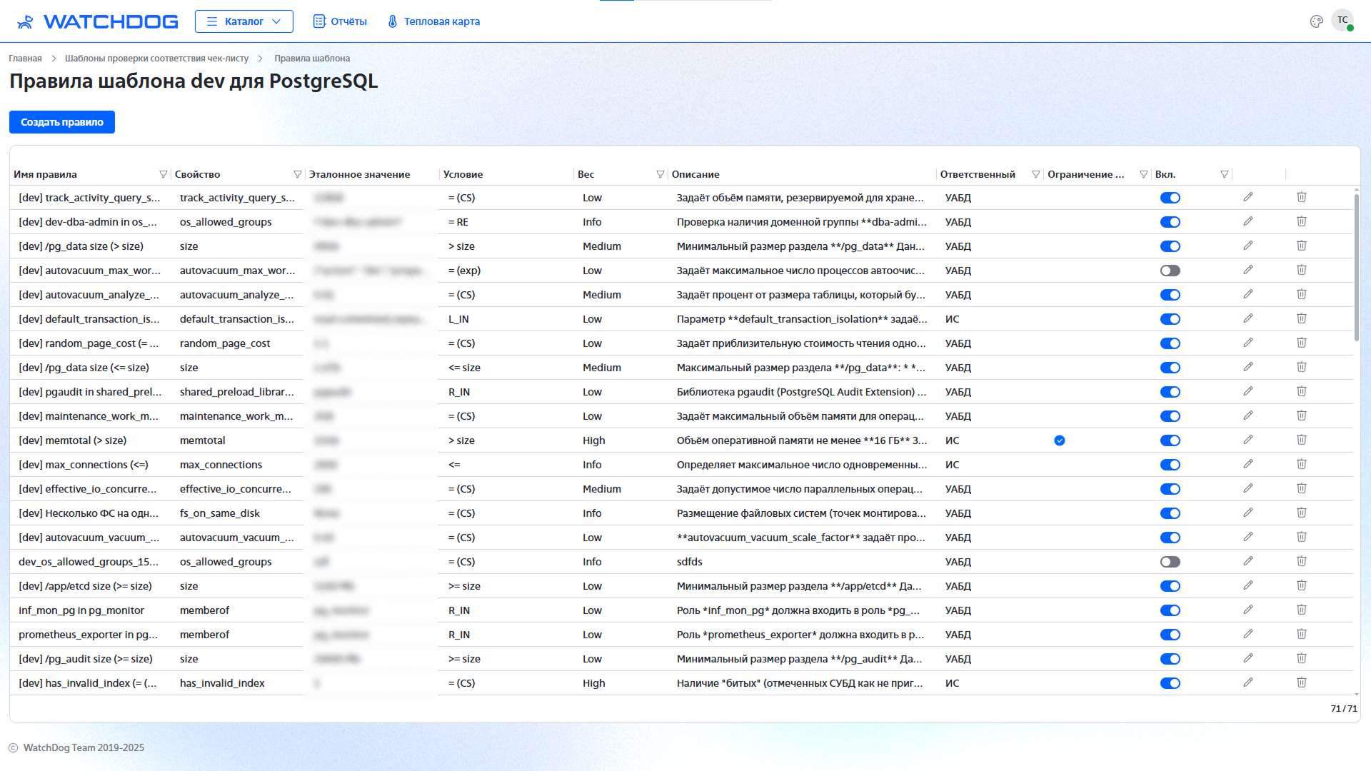 Сервис WatchDog (включая весь инструментарий) – прежде всего, закрытие нужд и потребностей dba, которые ежедневно выполняют типовые операции, решают инциденты, участвуют в ПСИ. Созданный dba для dba, прошедший путь от “БД инвентаризации” до полноценного “Портала” Надежности, ИБ, Архитектуры, представляет собой регулярный сбор всех параметров, их обработку (включая вычисления), вывод в удобный интерфейс. С возможностью “брать в работу”, “принимать в исключения”, настройками оповещений.