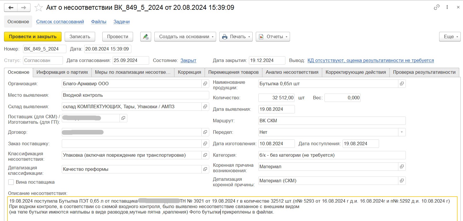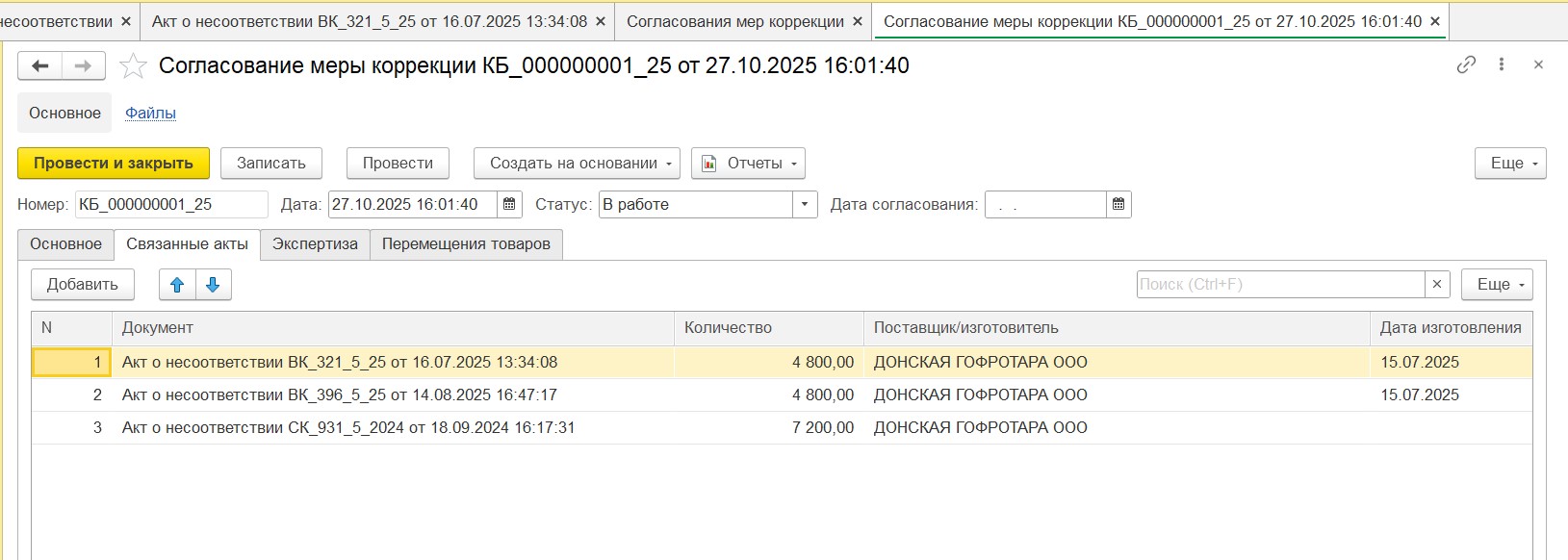 Все данные о несоответствиях и корректирующих мерах хранятся в системе.