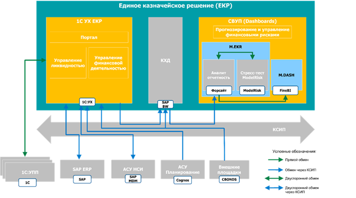 Повышение эффективности управления финансами за счет разработки и реализации единого казначейского решения, интегрированного с релевантными внутренними и внешними системами для целей планирования и прогнозирования казначейских операций, управления ликвидностью, долговым портфелем, финансовыми рисками Казначейства